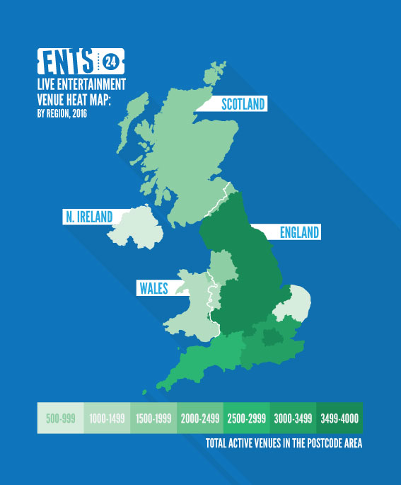 - For this study, we defined an 'active venue' as one whose live events are primarily live music or comedy gigs, and one that has listed at least one show in the last 12 months.